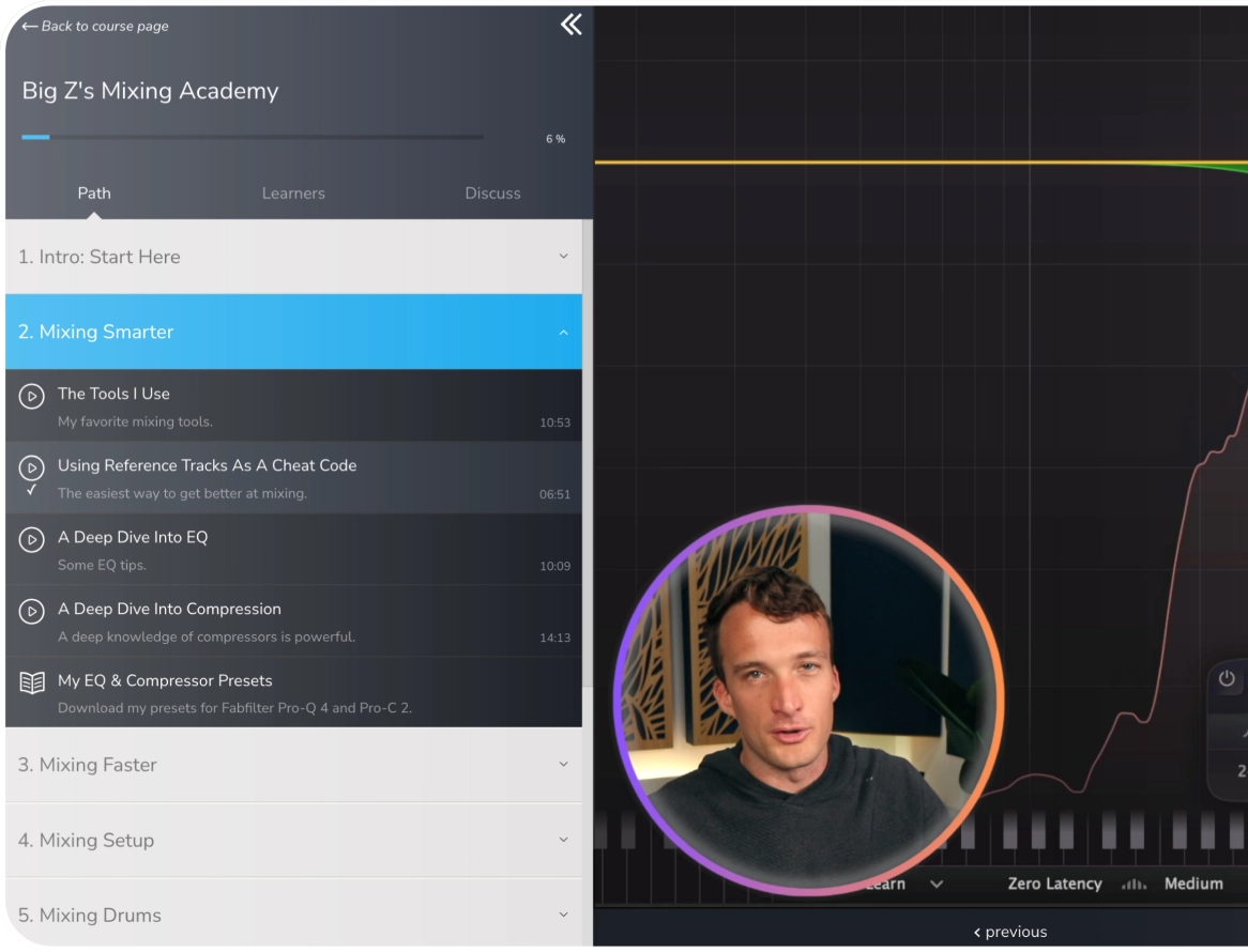 I’ve been going through the new version of Big Z’s Mixing Academy, and it’s honestly been a game changer for me. Since going through the lessons, I feel way more confident about my descisions. If you’re serious about getting better at mixing, this course is a no-brainer.